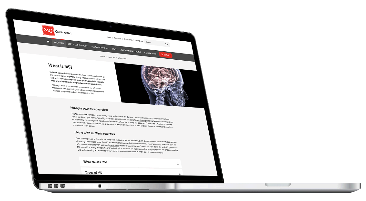 The main MS QLD site was built after a lengthy set of user interviews to ascertain the key audience requirements. The custom design set benchmarks for the industry sector and it brought the wider rural and urban community together by connecting them to services across the state.