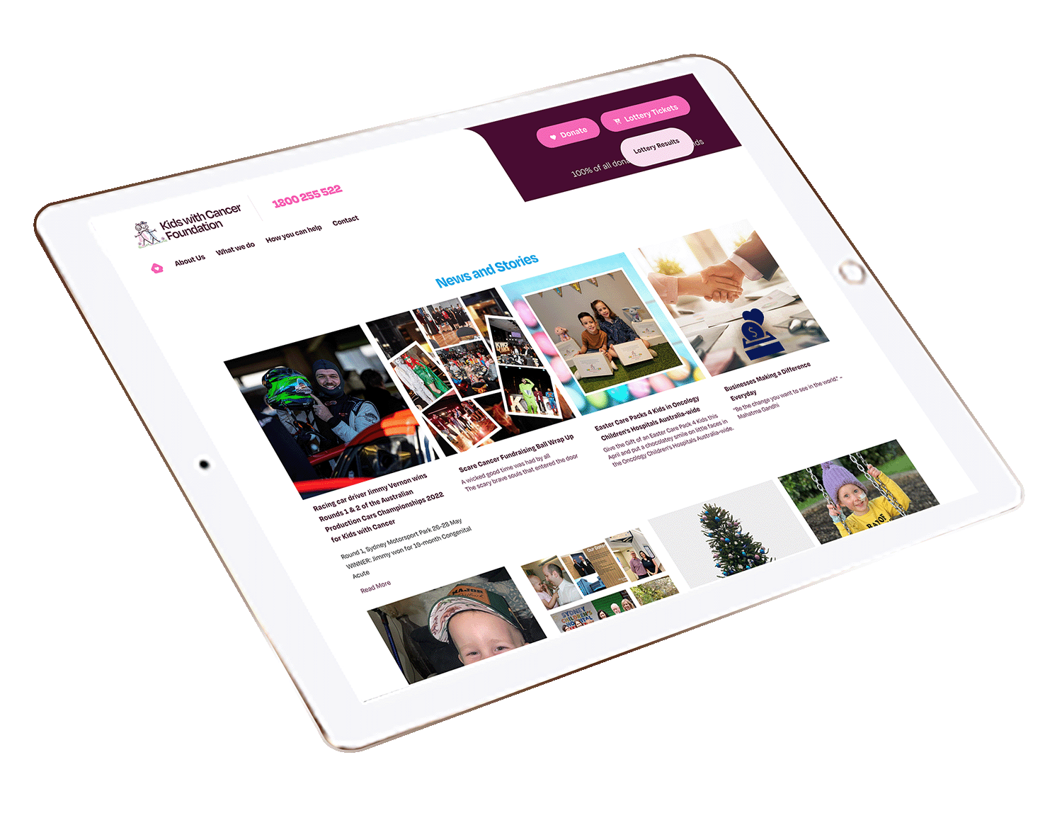 The Kids with Cancer Foundation (KWCF) originally found us through our work with Raiser’s Edge, a fundraising CRM product by Blackbaud. The site was originally in Squarespace and didn’t integrate smoothly, was difficult to manage and was not very mobile responsive. The brand was also becoming dated.