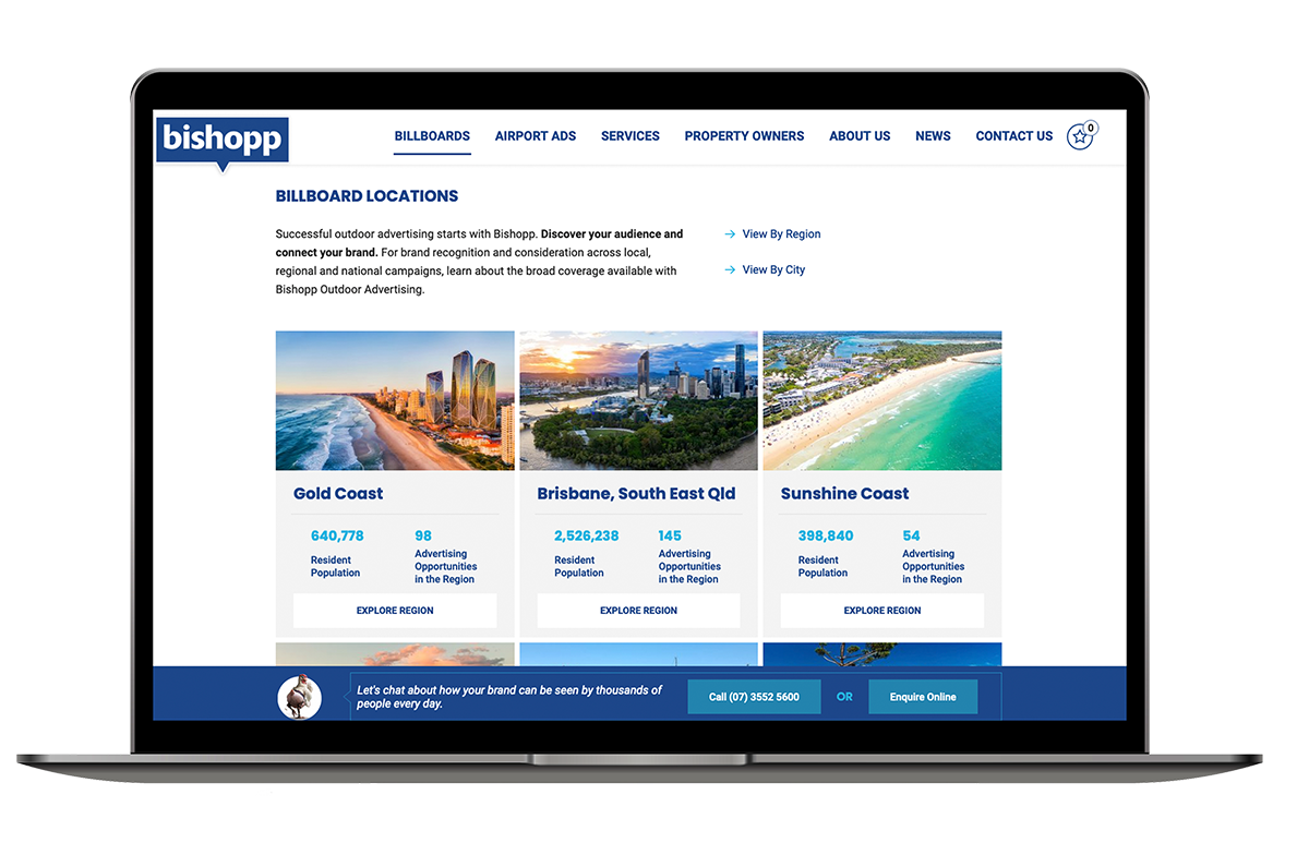 Their B2B website effectively connects local billboard advertising opportunities with local business owners throughout Queensland. The website showcases Bishopp’s extensive billboard inventory, highlighting the strategic locations and high-traffic areas where businesses can effectively reach their target market.