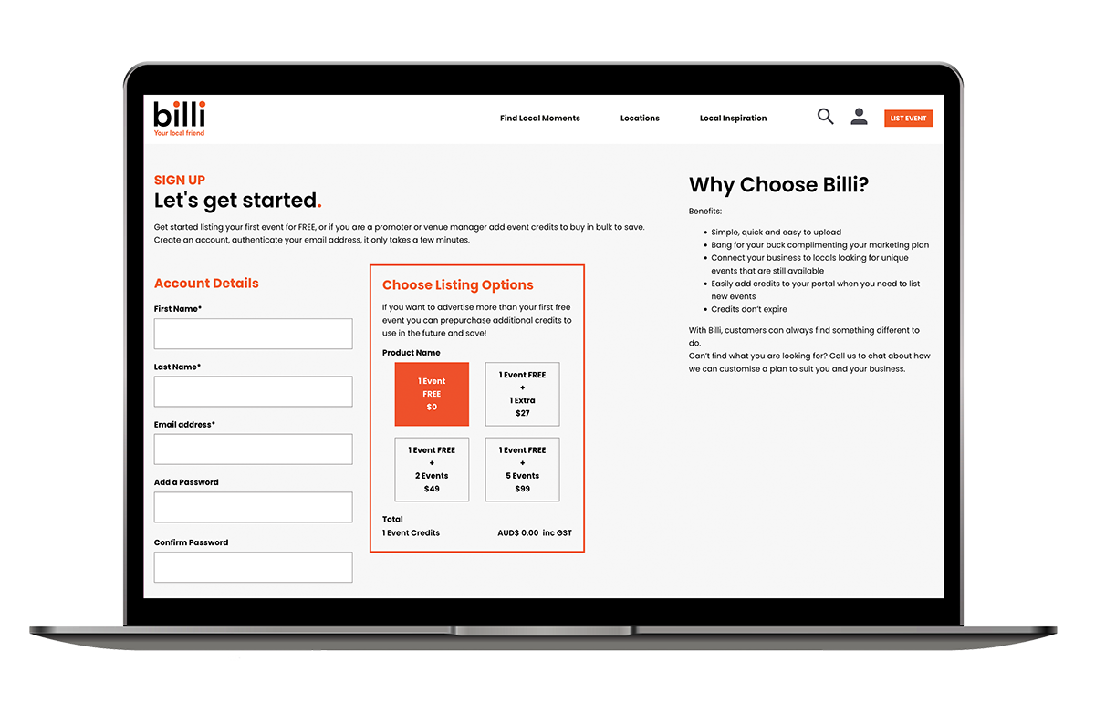 Site after site showed mainstream events only and everything was sold out. Billi founder Jodie needed a site to show the smaller get togethers, the events I had never heard of, the ones only the locals knew about, that still had availability. Billi was created to showcase local events, the coffee art courses in the next suburb, the “no reason” high tea at that boutique hotel I’ve always wanted to go to.